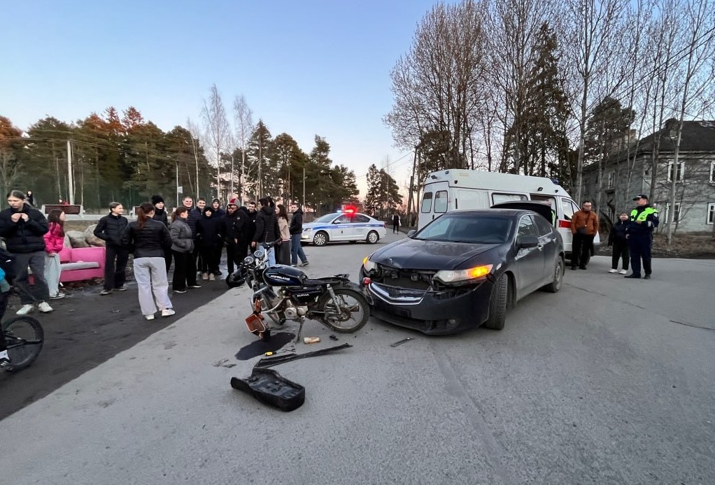 ДТП произошло на улице Труда в Петрозаводске. Столкнулись мопед и легковой автомобиль. От удара 15-летний подросток перелетел через машину. С переломом руки его доставили в больницу.