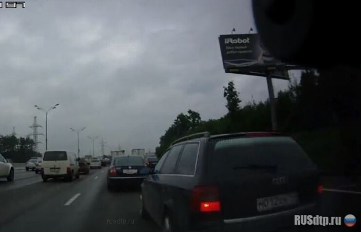 МКАД. ДТП. Аудист почти втиснулся. Почти.