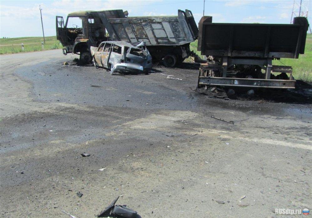 5 июня около 10-00 на 239 километре трассы Оренбург-Орск столкнулись КамАЗ и ВАЗ-2111.