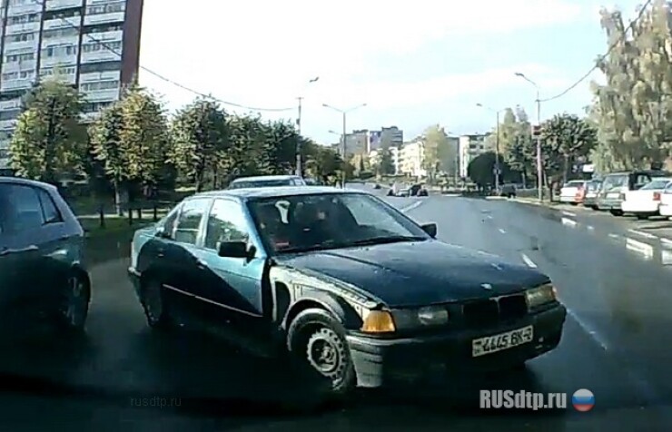 Новополоцк. При появлении перед собой помехи в виде остановившися автомобилей на ПП, для избежания столкновения \»бумерист\» выбрал выезд на встречную полосу. Отсутствующее переднее правое крыло наводит на мысль, что в подобной ситуации товарищ оказался не в первый раз.