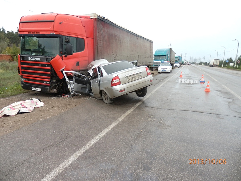 ДТП произошло 6 октября на 13 километре автодороги Тольятти — Димитровград. 24-летний водитель «Приоры» не справился с управлением, выехал на встречную полосу и столкнулся со стоящим грузовиком SCANIA под управлением 49-летнего водителя.