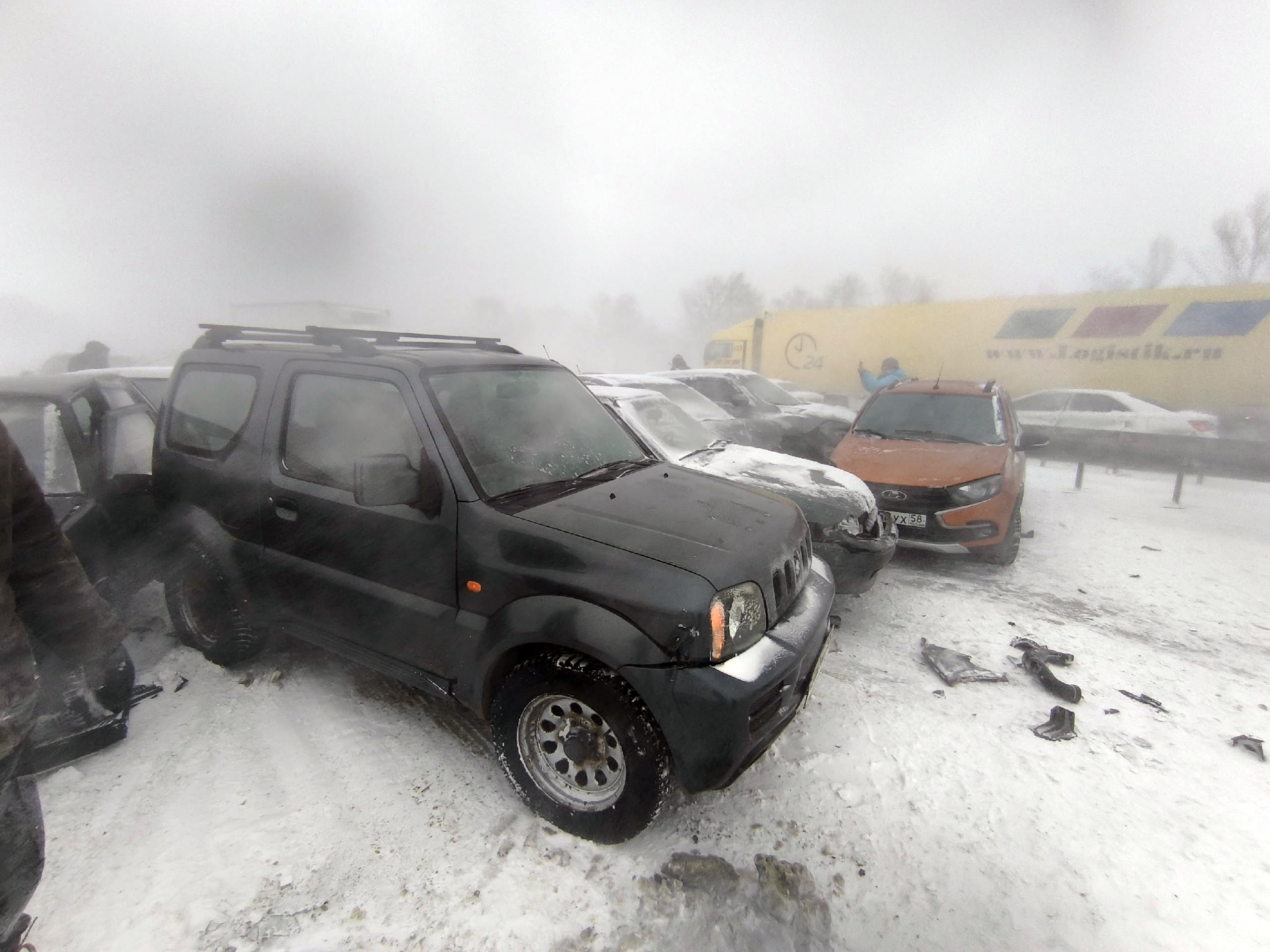 Видимость «0»,а все разно жмут на газ..дЭбилы…