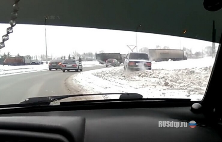 Набережные Челны, Татарстан. Всем любителям экшена. Парни на дороге засекли нездоровую езду водителя \»семерки\» и включили камеру телефона. Как все могут догадаться, развязка не заставила себя долго ждать. Слегка трезвых обитателей российской \»классики\» остановил лишь знак «Уступи дорогу» (символично, не правда ли?). Авторы ролика дождались представителей закона и потом поехали дальше.