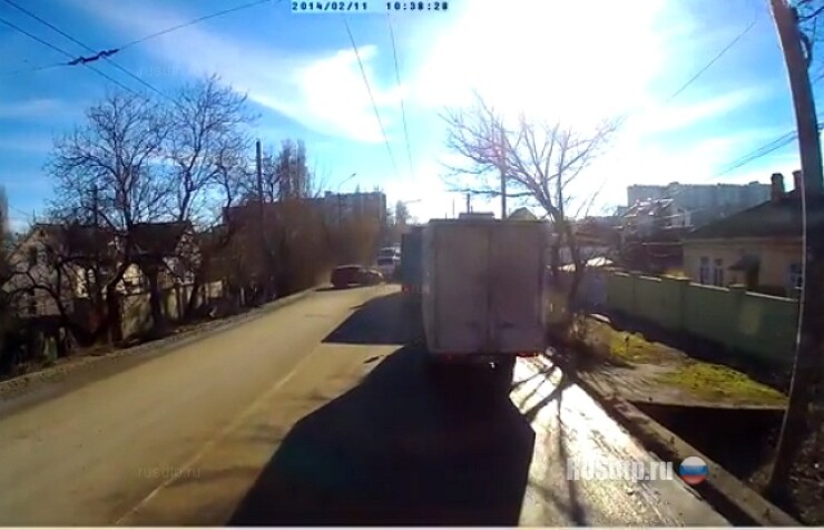 11 февраля. Симферополь. Пробка. Наплевав на сплошную, ринулся обгонять стоявших микроавтобус, правда далеко не уехал.