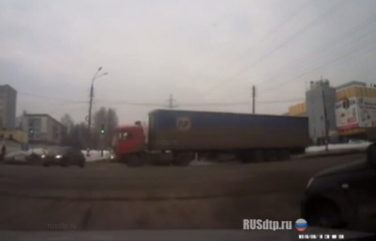 Грузовик выехал на перекрёсток на красный. Извините, но это грубое нарушение ПДД. Ну а про фальстарт пузотёрки, думаю, говорить не надо?