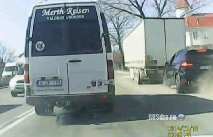 Описание: \»Водитель Porsche Cayenne выехал на встречную полосу, пересек две сплошные линии и попытался вклиниться в ряд перед автомобилем регистратора и микроавтобуса. Его не пропустили.