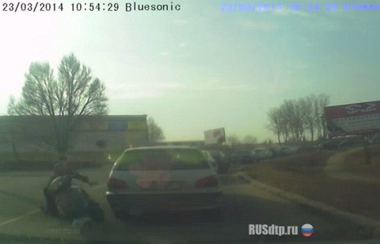 23 марта. Барановичи. Машины замерли перед ж/д переездом, внезапно на встречке появился скутерист и влетел в Пежо. Земное притяжение не сразу отпустило пострадавшего, наконец, он поднялся. Автор утверждает, что водитель двухколесного был пьян.