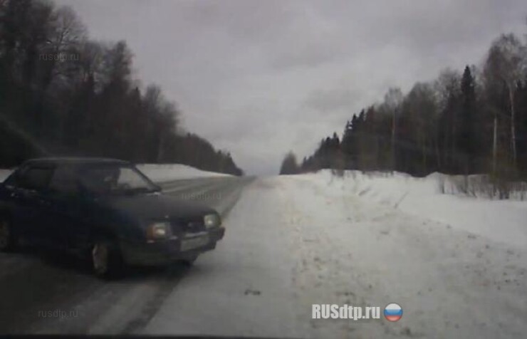Снято 3 апреля на трассе Полазна-Чусовой в Пермском крае. Водитель ВАЗа 21099 на скользкой дороге не удержал автомобиль и вылетел на встречную, где протаранил и перевернул автора.