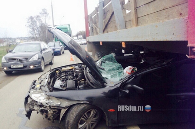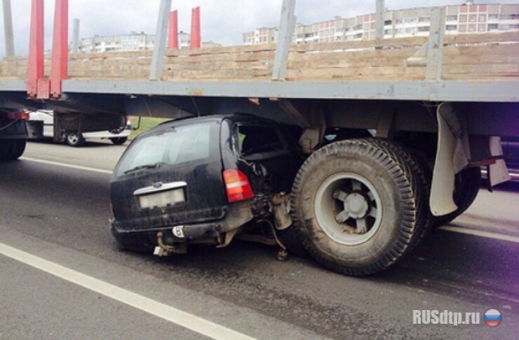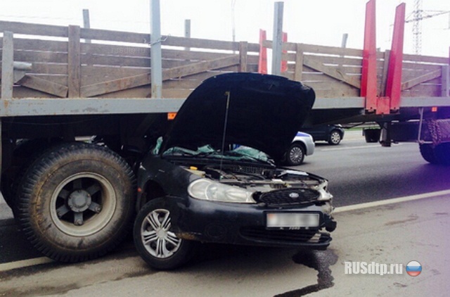 Как рассказал водитель грузового, он ехал в правом ряду, никого не трогал, в какой-то момент увидел в зеркало, как попутный Форд Мондео занесло и он ударился об отбойник, после чего Форд из поля зрения пропал, а его машина вдруг перестала ехать. Выйдя из нее, мужчина обнаружил \»неисправность\», торчащую из- под полуприцепа. К счастью, 31-летняя водитель Форда серьезных травм не получила- у нее небольшое сотрясение и ушиб позвоночника. Причина потери управления пока не выяснена.