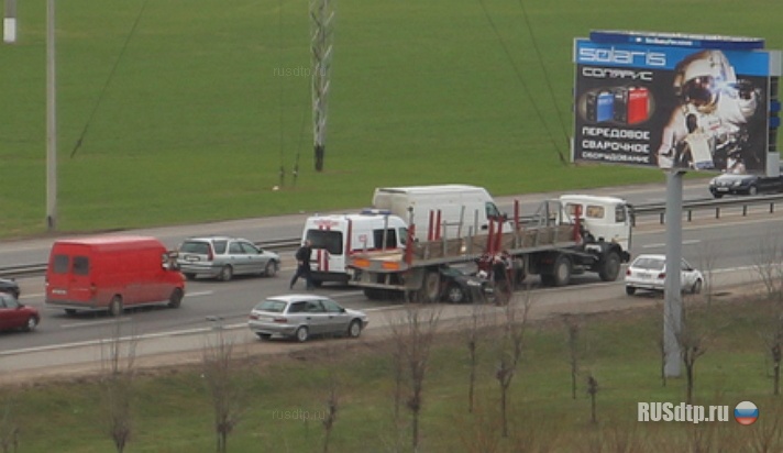 9 апреля, Минск. На МКАД под полуприцеп большегруза попала женщина, причем попала она туда вместе со своей машиной.