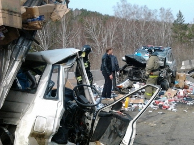 В Ланд Крузере ехала семейная пара с годовалым ребенком, все они получили травмы, малыш, благодаря детскому креслу- незначительные. Водитель грузовичка госпитализирован, его пассажир погиб на месте.