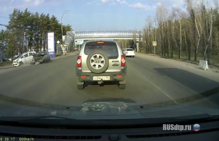Сегодня, 16 апреля, Воронеж. На проспекте Патриотов водитель легковушки начал поворот налево на загоревшуюся зеленую стрелку, но был подбит.