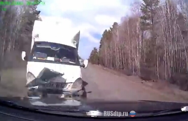 А газелист неплохо шел… протолкнул девятку в фуру.