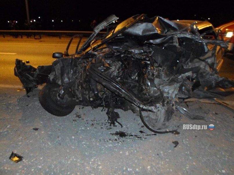 Удар о встречный грузовик был такой силы, что передняя часть легковушки превратилась в груду металла, водитель и пассажир Фольца погибли на месте.