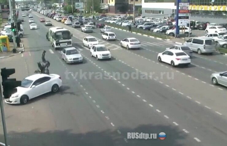 1 мая. В Краснодаре мотоциклист перелетел через иномарку, водитель которой не пропустил его.
