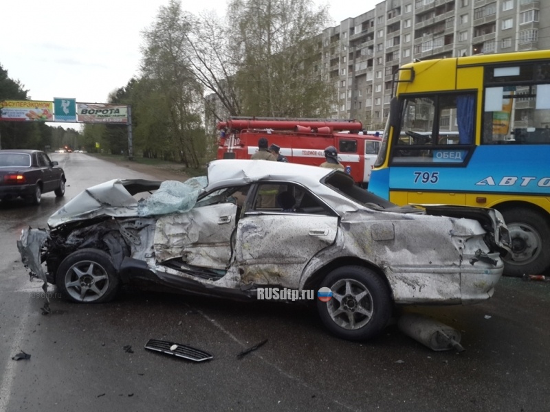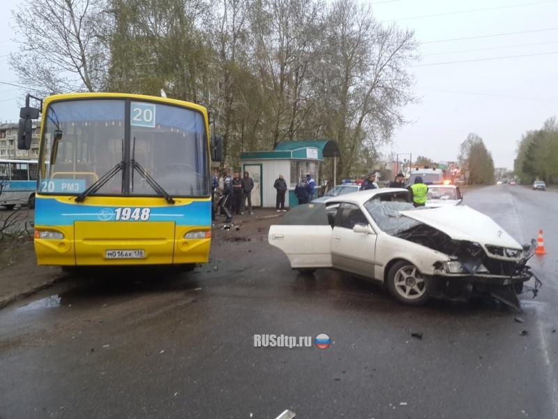 Сегодня, 7 мая. Около семи утра на Ленинградском проспекте Ангарска 24-летний водитель Тойоты Марк-2, превысив допустимую скорость, врезался в поворачивающую налево Тойоту Пробокс, после чего \»марка\» откинуло в стоящий на остановке автобус.