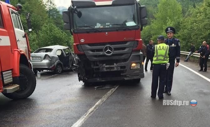 По предварительным данным, 57-летний водитель автомобиля Chevrolet Aveo, на повороте не справился с управлением, выехал на встречную полосу и столкнулся с грузовиком Mercedes-Benz Actros.