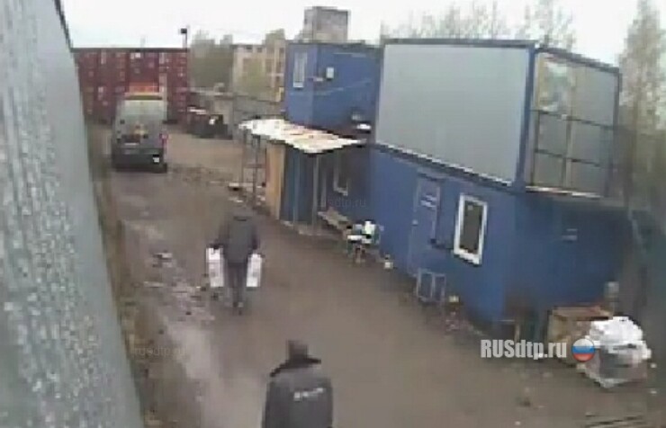 Где это- неизвестно, камера наблюдения на каком- то складе. Мужика переехали.