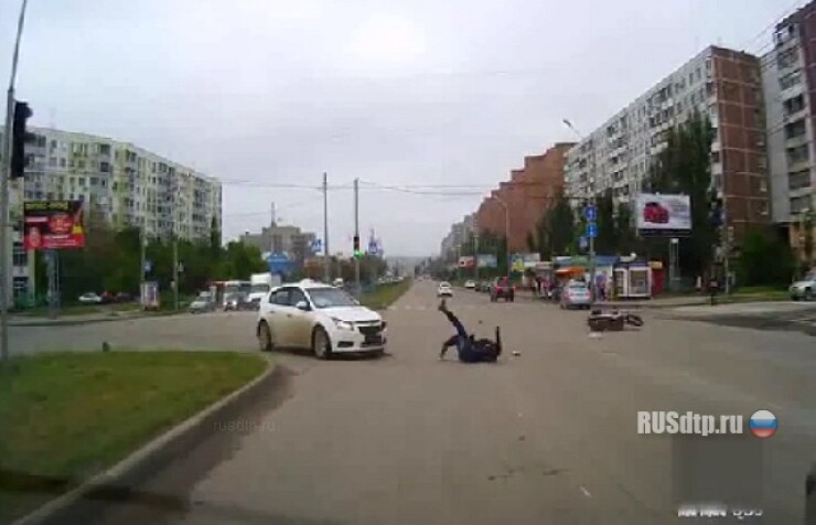 13 мая, Ростов- на- Дону. Мотоциклист со стартом явно поторопился, за что и поплатился.