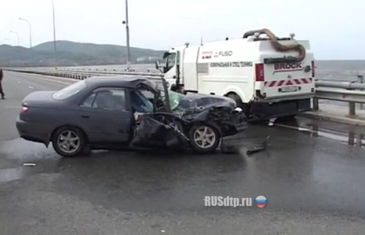Ссылку прислал AlexSirT. Владивосток, на Низководном мосту девушка- водитель Тойоты Карины буквально на ровном месте врезалась в автомобиль дорожной службы.