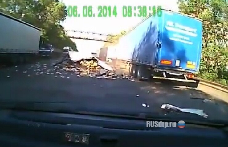 Водитель фургончика видимо уснул, ну или на что -то отвлекся и въехал в припаркованную фуру.