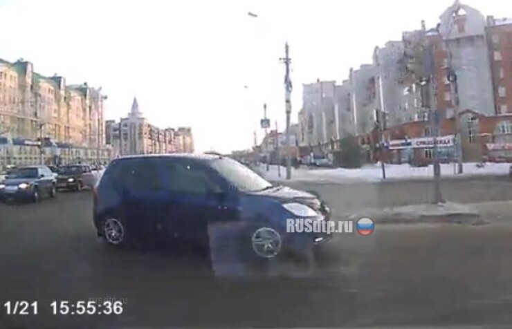 В Омске водитель автомобиля Mazda Demio проскакивал на перекрестке налево и спровоцировал ДТП.