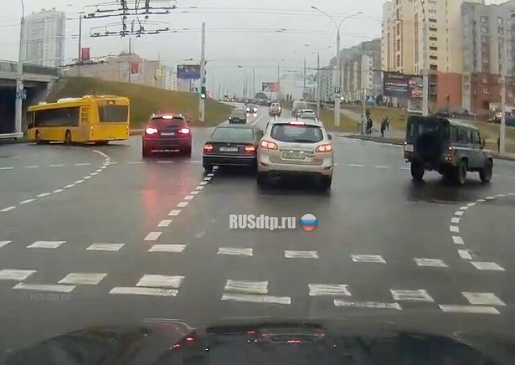 Минск, ул. Руссиянова. Двое притерлись на перекрестке.