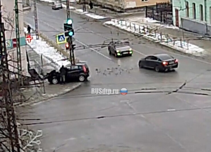 7 января. Петрозаводск. ДТП на перекрестке А.Невского — Правды. От удара один из автомобилей вылетел на тротуар и сбил пешехода.