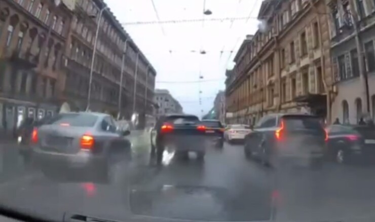 ДТП произошло на Владимирском проспекте в Санкт-Петербурге. Автор рассказывает, что двигался в крайней левой полосе со скоростью около 60 км/ч.