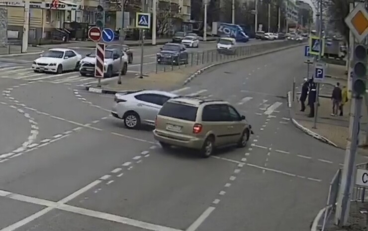 Женщина-водитель «Соляриса» получила травмы. Момент столкновения попал в объектив камеры уличного наблюдения.