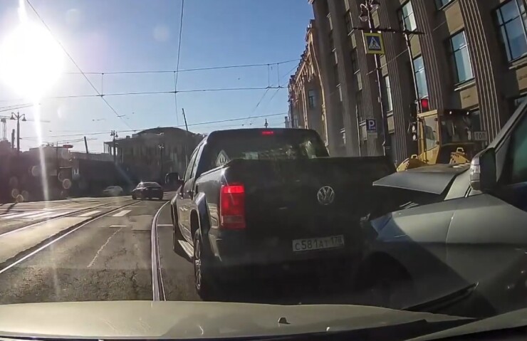 а что за тёрки у автора ? Зачем он щемит полосу, если по путям едет? Ну и ехай по рельсам дальше!