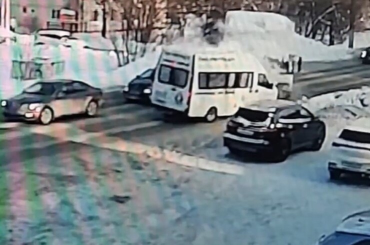 ДТП произошло на улице Парижской Коммуны в Иванове. Столкнулись грузовик Mercedes-Benz и «Газель» ритуальной службы. Травмы получили пассажиры автомобиля ритуальной службы. У одного пострадавшего — подозрение на перелом ребер и шейки бедра. Момент столкновения попал в объектив камеры.