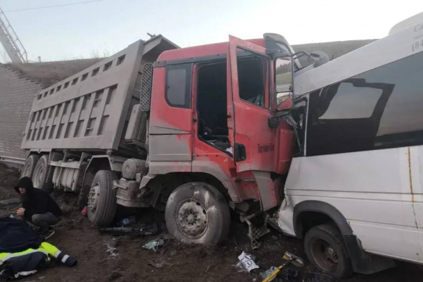 В Госавтоинспекции сообщили, что 36-летний водитель грузовика выехал на встречную полосу и столкнулся с микроавтобусом.
