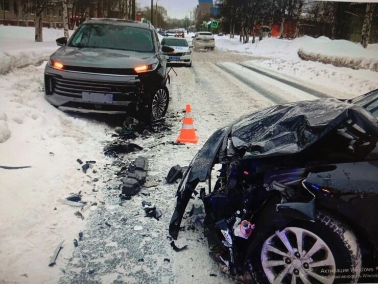 На улице Шабалина в Архангельске камера запечатлела момент столкновение автомобилей Hyundai Solaris и Exeed.