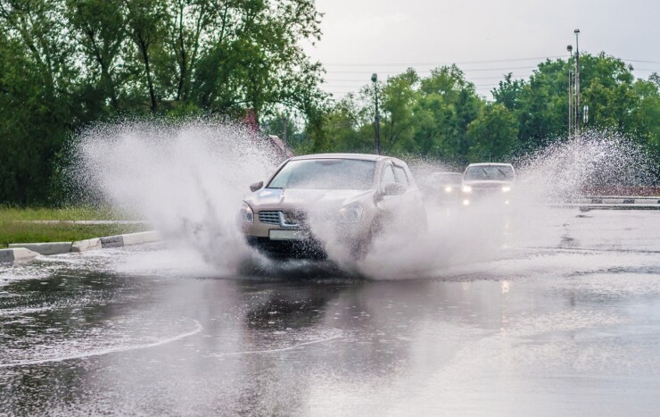 Увидев впереди на проезжей части блестящую водную гладь лужи, жизненно важно заранее сбросить скорость и попытаться аккуратно объехать препятствие. Лужа может быть коварной ловушкой: ее глубина способна оказаться настолько большой, что колесо вашего автомобиля либо полностью потеряет сцепление с твердым покрытием (эффект аквапланирования).