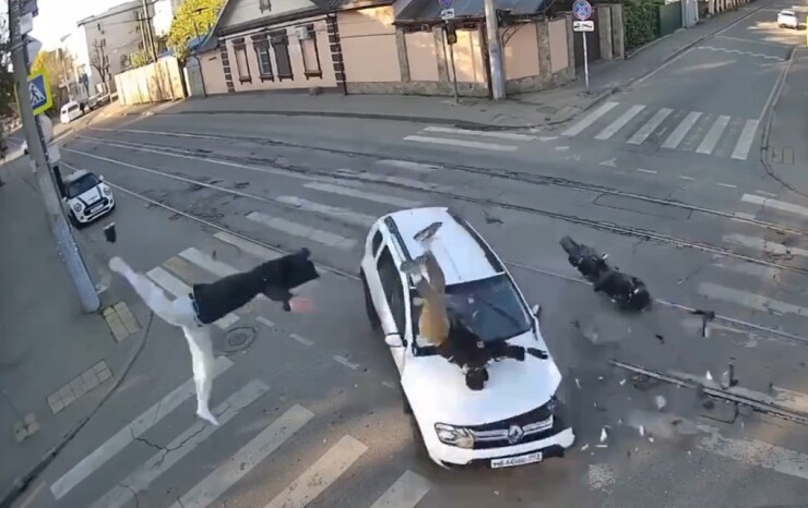 26 апреля, в 6:43 утра, на пересечении улиц Братьев Дроздовых и Гоголя в Краснодаре 23-летний мотоциклист на перекрестке не уступил дорогу автомобилю Renault Duster.