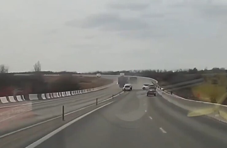 Дальнобои, как по учебнику, сразу на встречку. Хорошо, там никого не было. Но, уж очень большим радиусом обрулили.
