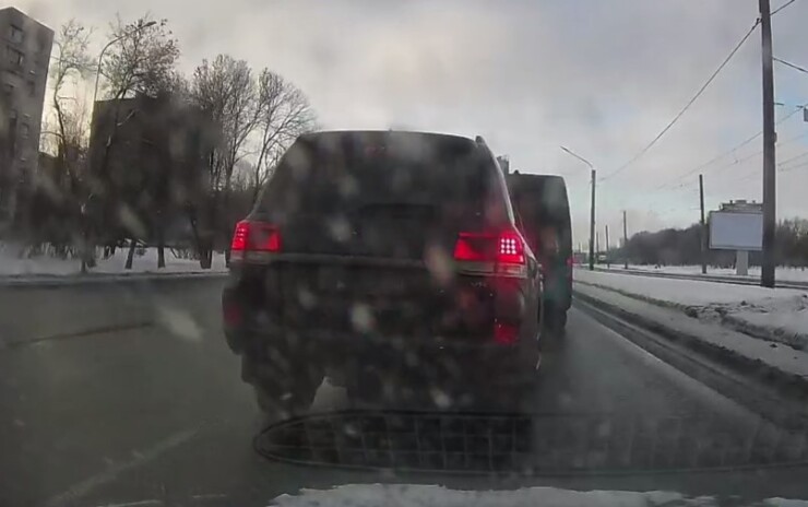 В Санкт-Петербурге водитель внедорожника Toyota Land Cruiser обиделся на то, что его не пропустили и решил отомстить. Он обогнал автомобиль с видеорегистратором и резко затормозил, играя в «учителя», после чего уехал. Но автор ролика догнал нарушителя и высказал ему несколько «ласковых» слов.