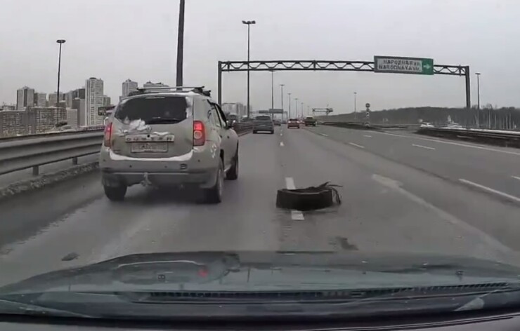 Инцидент произошел на внешней стороне КАД над Мурманским шоссе в Петербурге. По словам автора, кто-то потерял колесо, а он на него наехал.