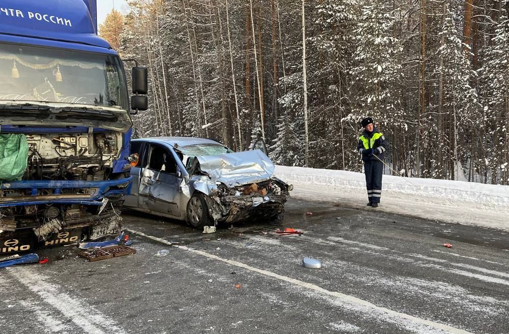 Авария произошла накануне на 118-м километре автодороги Серов – Североуральск – Ивдель. 48-летний водитель автомобиля Kia Cerato с 29-летним стажем выехал на полосу встречного движения и совершил лобовое столкновение с грузовиком Hino.