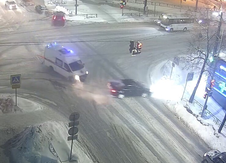 20 февраля на перекрестке улиц Гоголя и Красноармейская в Петрозаводске произошло ДТП с участием автомобиля скорой помощи. Момент столкновения зафиксировала городская камера наблюдения.
