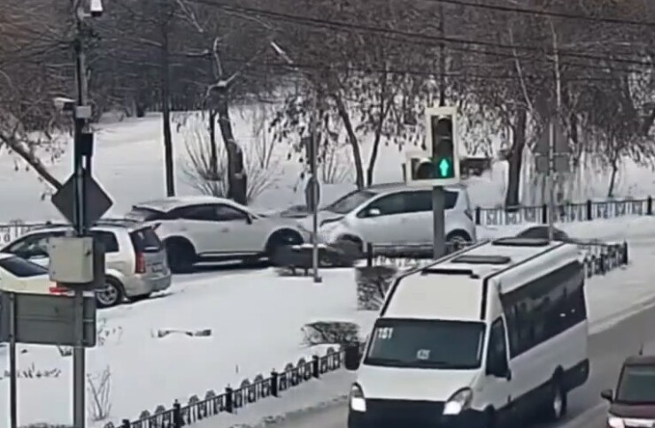В Улан-Удэ кроссовер выезжал с парковки и не пропустил хетчбэк. Происшествие зафиксировала камера уличного наблюдения.