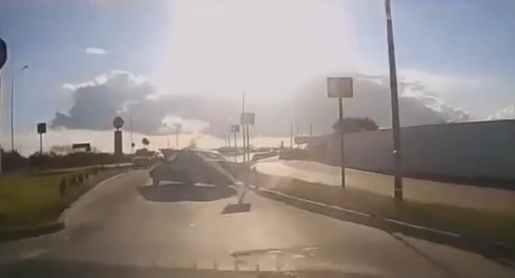 На улице Псковской в Великом Новгороде мужчина на «Ладе» пытался через сплошную обогнать автомобиль с видеорегистратором, но не справился с управлением и врезался в бордюр.