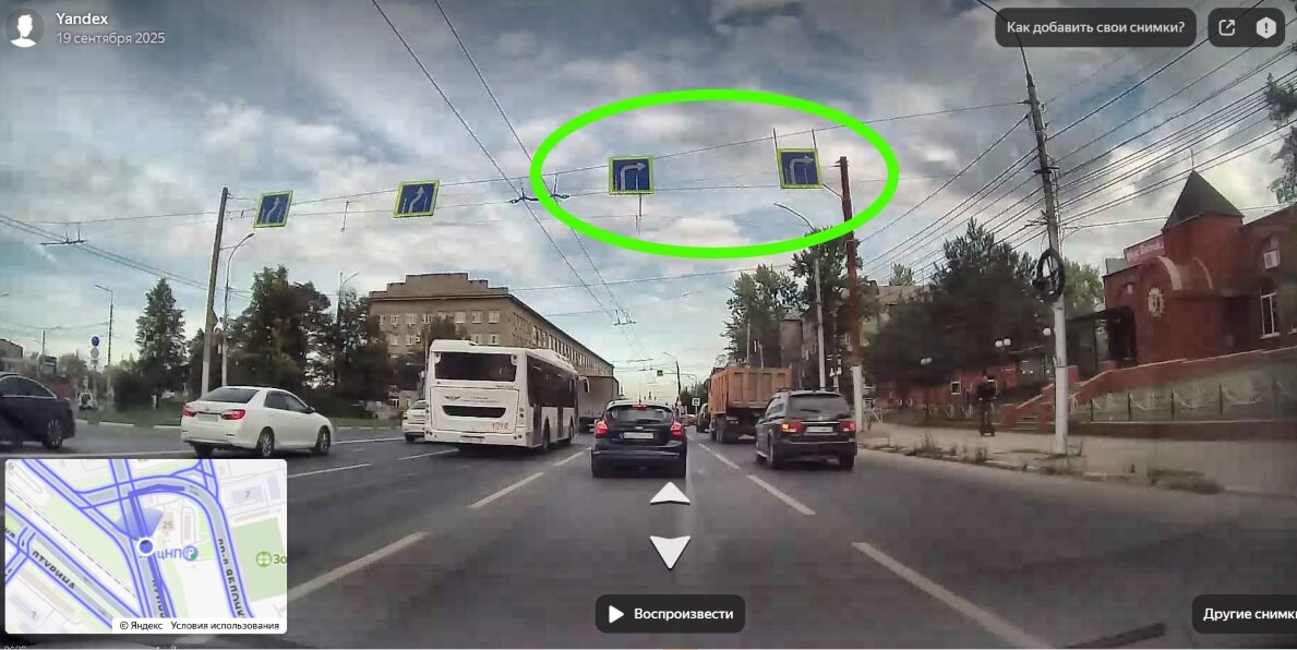 Ты подъезжаешь к перекрестку по Куйбышевскому ш. для поворота направо в правой полосе и останавливаешься в ожидании разрешающего сигнала светофора, рядом слева на вторую полосу подъезжает МАЗ и тоже останавливается для поворота направо. Включается светофор, фургоны в полосе перед тобой начинают движение и ты за ними, а слева МАЗ со свой полосы. При повороте никто никому не мешает, но аналу на МАЗе сразу при выезде на проезд Яблочкова захотелось с левой полосы перестроиться на правую полосу и поддевает тебя, где ты как ехал так и ехал по правой полосе! Так кто тут осёл, млять, ты или анал?