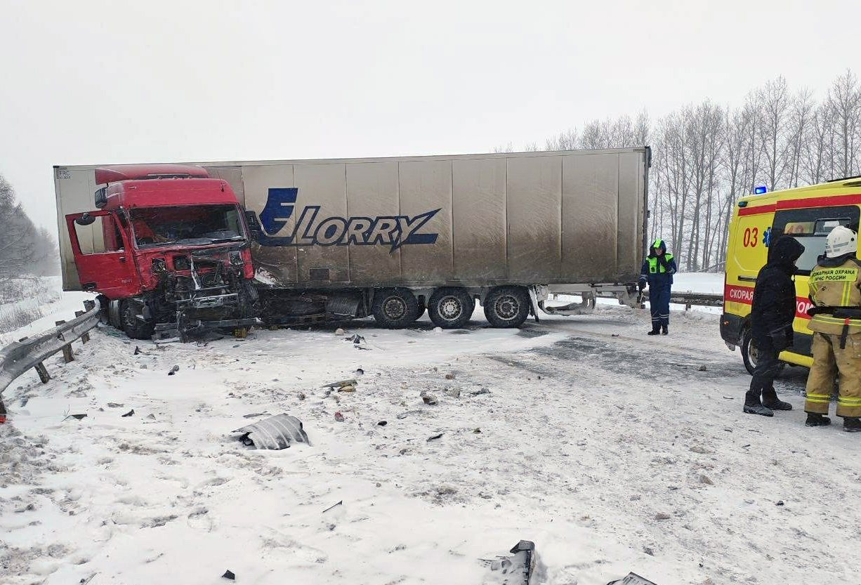 ДТП произошло 14 декабря около 12 часов на трассе Казань — Оренбург недалеко от деревни Нагорное в Альметьевском районе Татарстана.