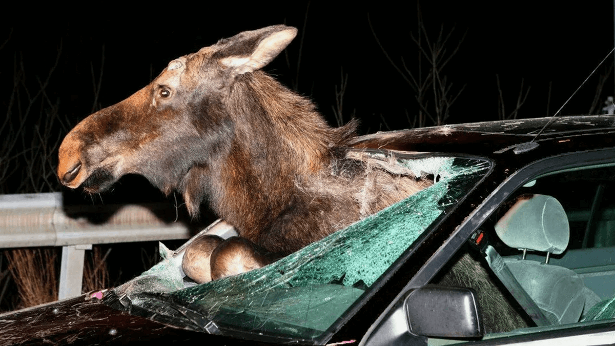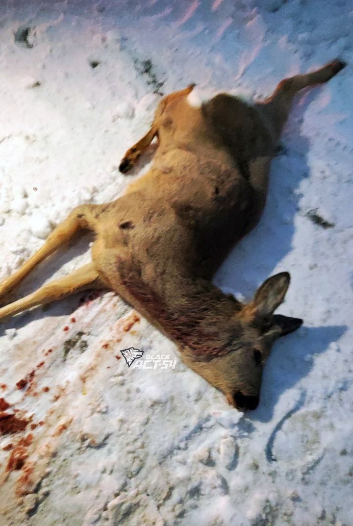 Испуганное животное спасалось от преследования волка и в панике выбежало на дорогу, не заметив приближающийся автомобиль.