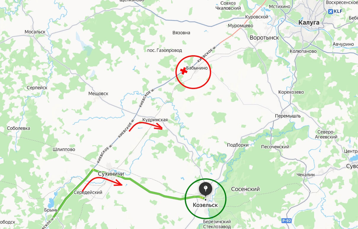 Если в Козельск, то должны были за 20 км до места ДТП свернуть на Сухиничи. Как они оказались в Бабынинском районе? Пропустили поворот???