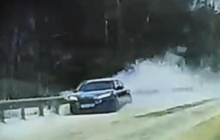 Водитель встречного авто, в котором был установлен видеорегистратор, успел сбросить скорость и прижаться к обочине. Однако этого оказалось недостаточно, и его машину занесло на отбойник.