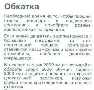 В отличие от прошлых лет, современные требования к обкатке значительно упростились. Водителям рекомендуется лишь избегать превышения скорости 110 км/ч, поддерживать обороты двигателя не выше 3 500 об/мин и избегать резких ускорений и перегрузок.