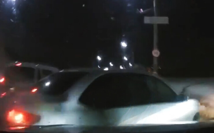 ДТП произошло в Чебоксарах. Водитель автомобиля с видеорегистратором не успел затормозить и въехал в две машины, которые остановились по неизвестной причине в правой полосе.